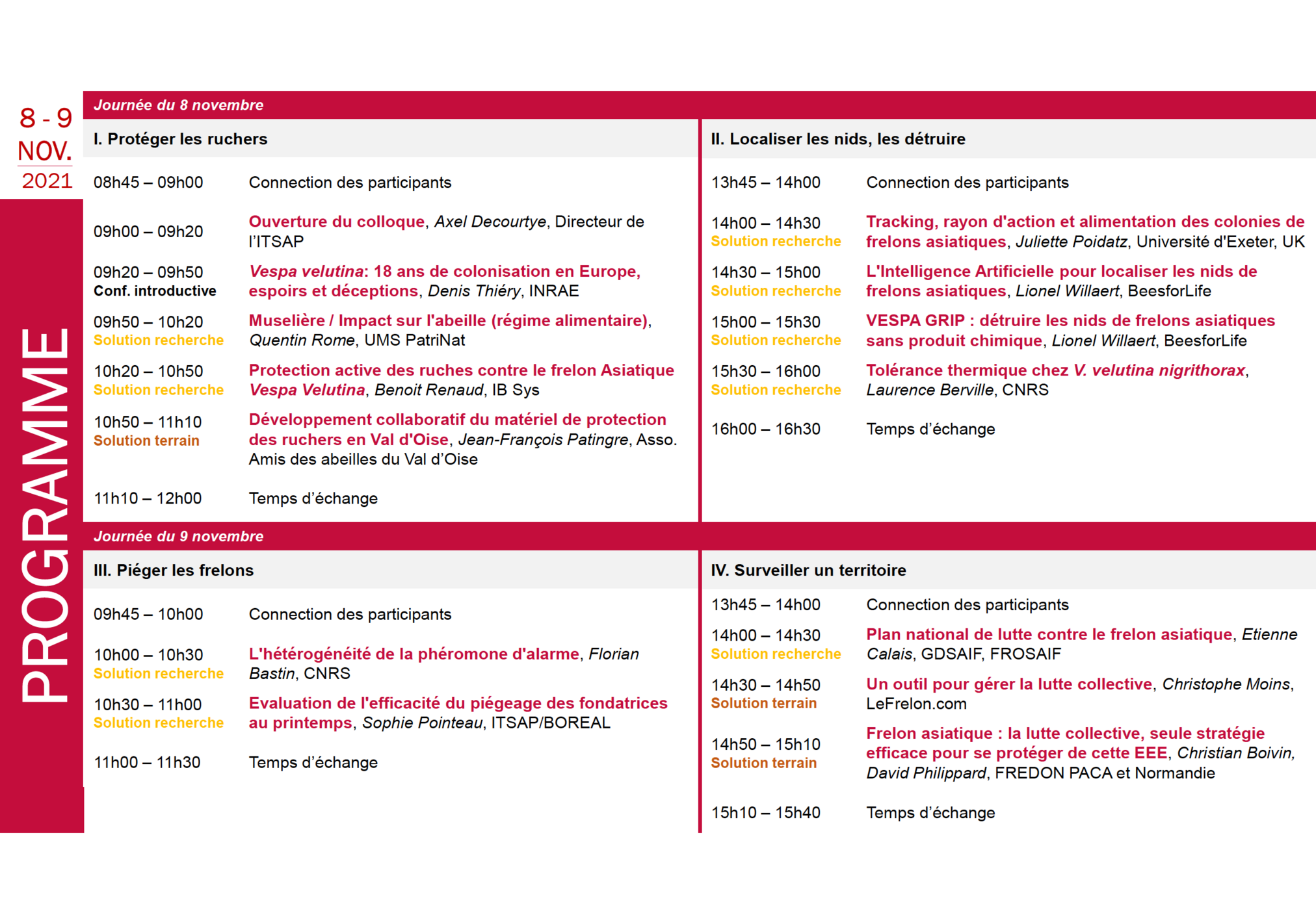 Colloque ITSAP et MNHN BeesForLife présente ses projets : Lutter contre le frelon asiatique Piéger, surveiller, protéger, localiser et détruire 8 et 9 novembre 2021