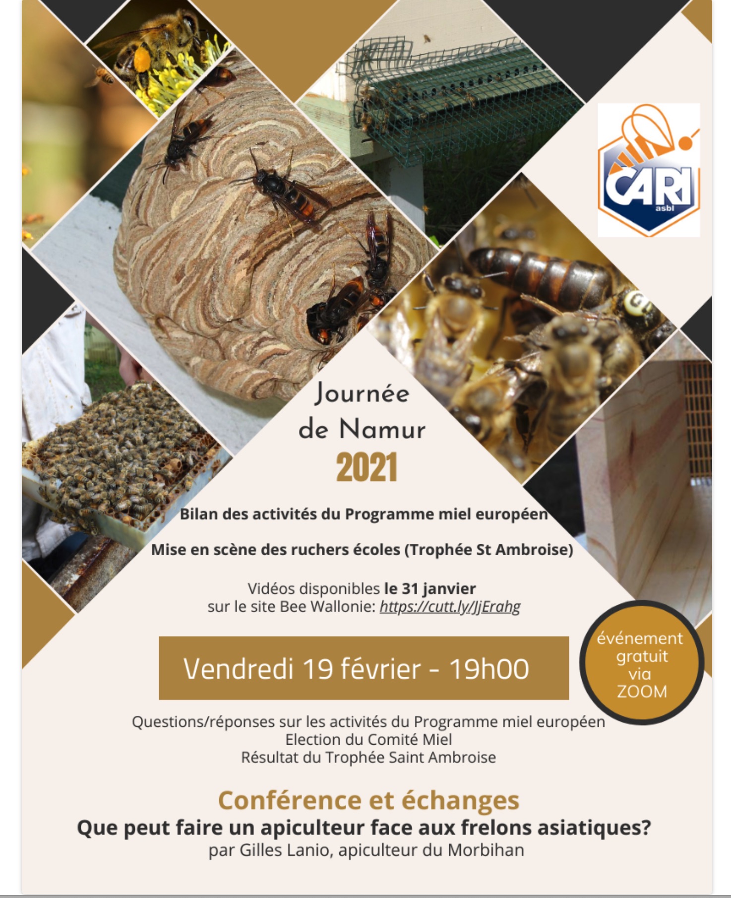 Comme le veut la tradition, un bilan des activités annuelles du Programme Miel Européen est présenté à cette occasion. Il prendra cette année la forme de petites vidéos réalisées par le CARI et Arista Bee Research Belgium. Ces vidéos seront disponibles à partir du 31 janvier sur le site de Bee Wallonie.