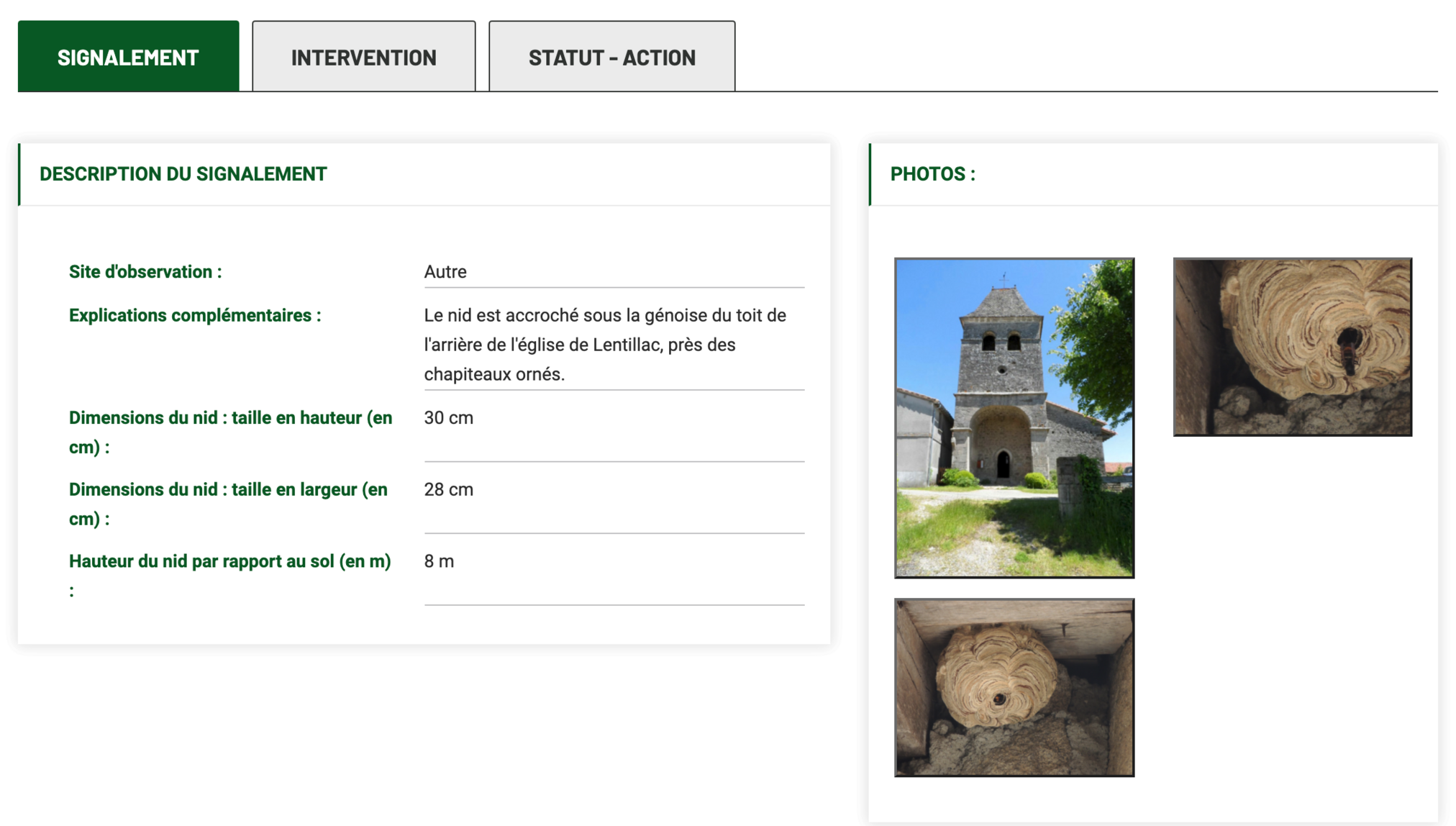 A cette occasion la Mairie a découvert l'Application BeesForLife. la Mairie décide de s'abonner à BeesForLIfe et bénéficie en quelques clics d'un service de signalement,de support à la gestion de l'élimination des nids signalés sur son domaine public et d'un moyen pour orienter les citoyens vers des professionnels pour la desctruction des nids sur le domaine privé.