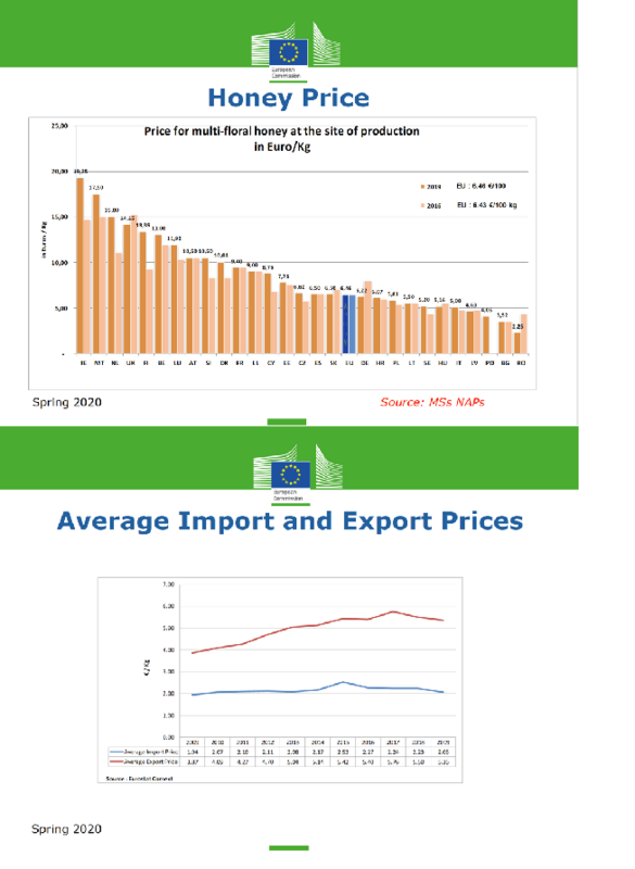 Une infographie à parcourir absolument pour comprendre un peu mieux les différences de prix, l’évolution du métier de l’Apiculture, le nombres d’essaims en Europe et les enjeux stratégiques de protection, peut être par des normes ou des labels les productions locales européennes.