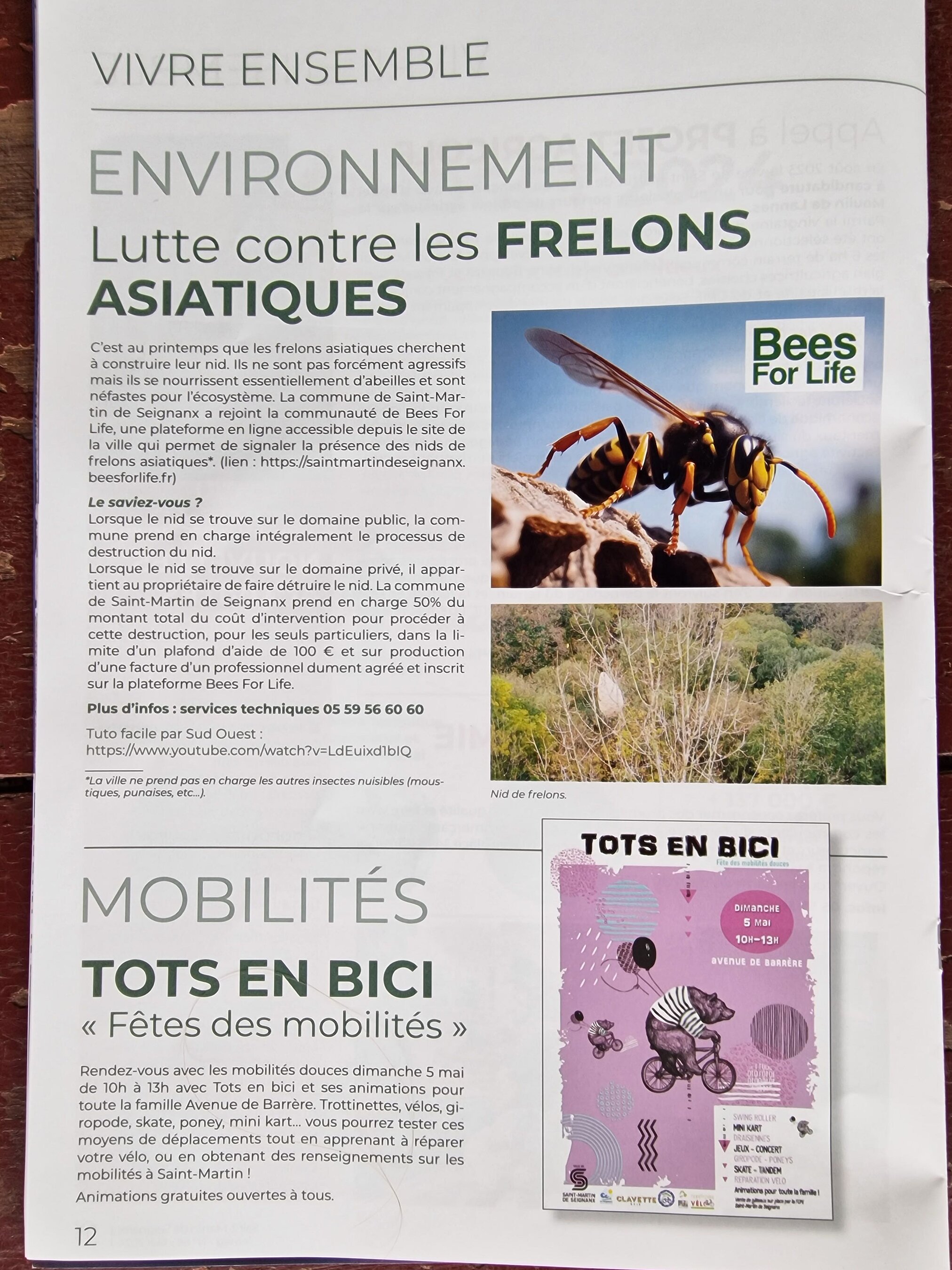 La ville de saint Martin de Seignanx utilise son magazine d'information "Le Mag" pour faire connaitre sa campagne de protection des abeilles et des pollinisateurs avec BeesForLife