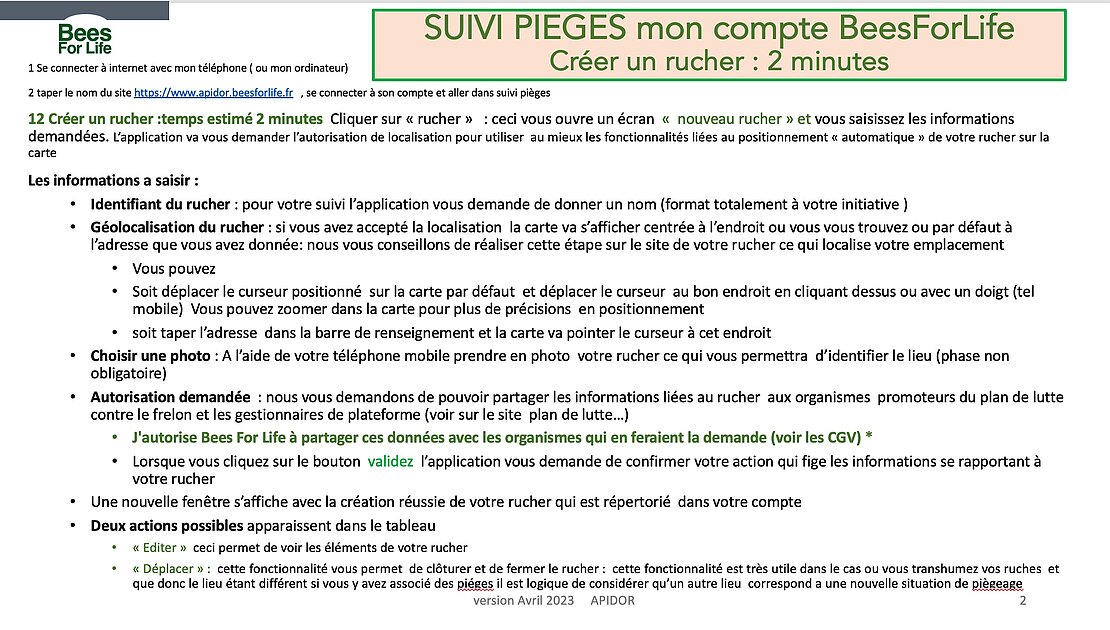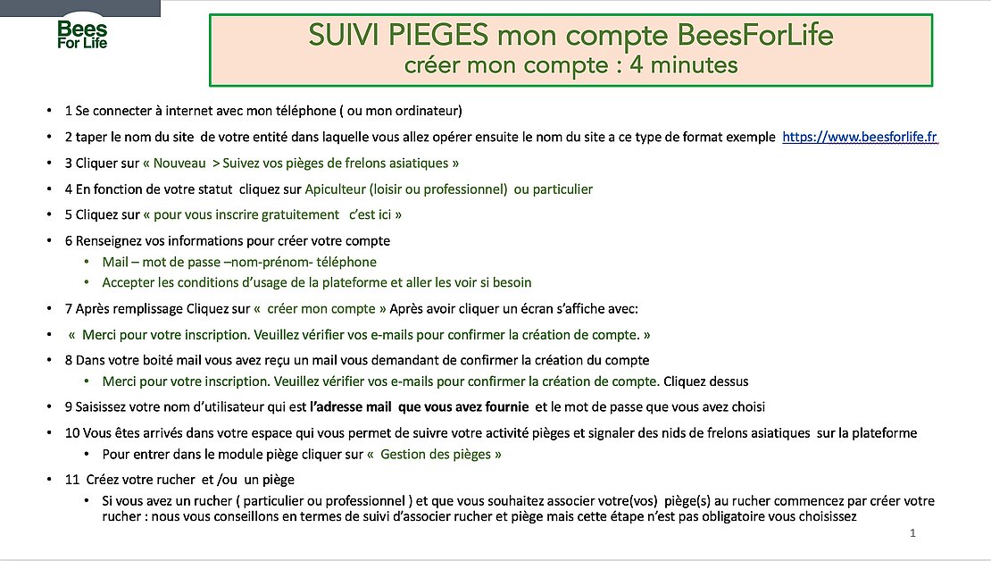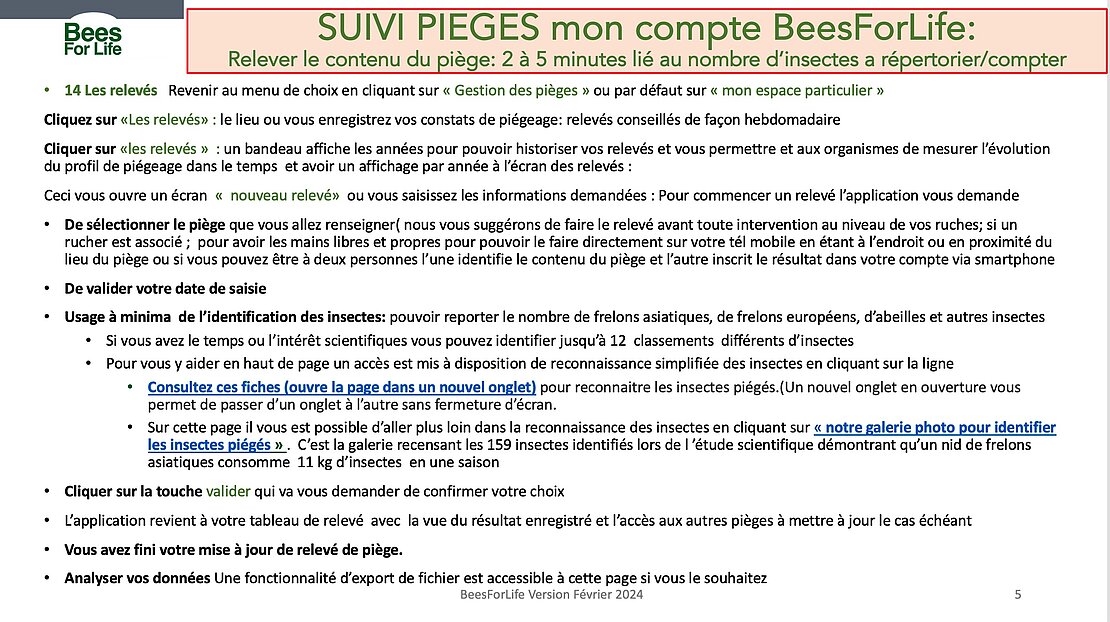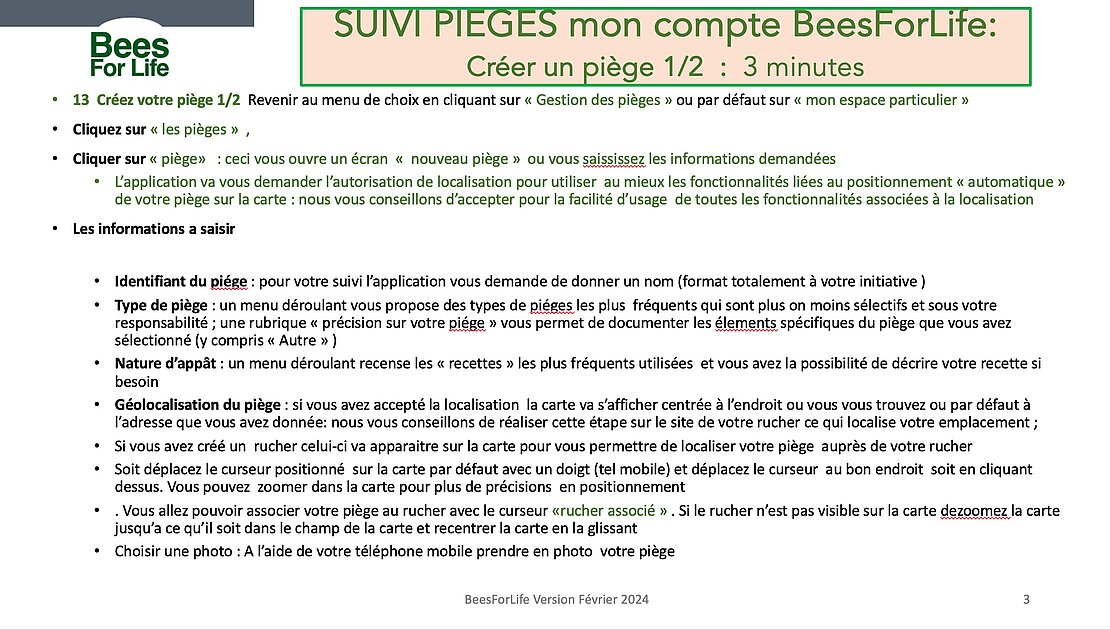 Mode d'emploi usage du Suivi Piéges de BeesForLife