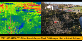 Cette technique d’exploration se fait à l’aide d’un drone qui embarque à la fois une caméra visuelle et une caméra thermique. Les images réalisées sont ensuite analysées en post production au travers de logiciels de reconnaissance et de calcul en Intelligence Artificelle pour identifier les formes et « points » chauds des images et ainsi localiser géographiquement les emplacements avec suspicion de présence de nids.